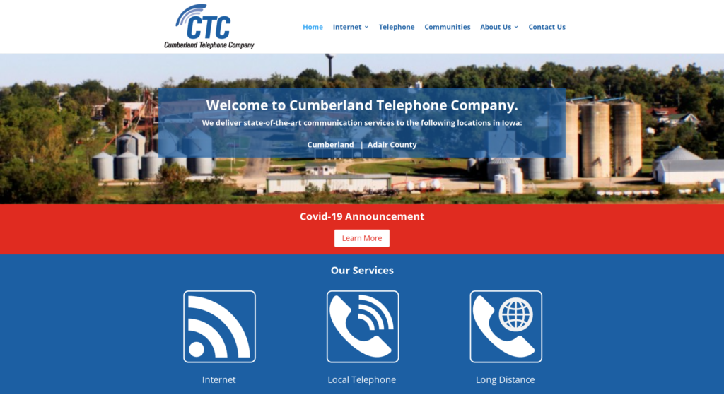Welcome to the Cumberland Telephone Company. We provide Internet to the town of Cumberland, Cass County, and Adair County, in Iowa.