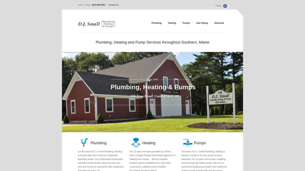 Since 1992 D.J. Small Plumbing, Heating & Pumps has been serving Southern Maine’s plumbing and heating needs with the highest level of service, professionalism, and craftsmanship. Our straight forward approach means our customers get the job done right, at a good value, with the least amount of hassle. Whether you are building a new home, remodeling an existing home, or simply need a leaky faucet repaired, our team of professionals is here to help.