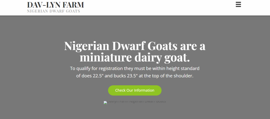 Nigerian Dwarf Goats are a miniature dairy dairy goat. To qualify for registration they must be within height standard of does 22.5″ and bucks 23.5″ at the top of the shoulder.