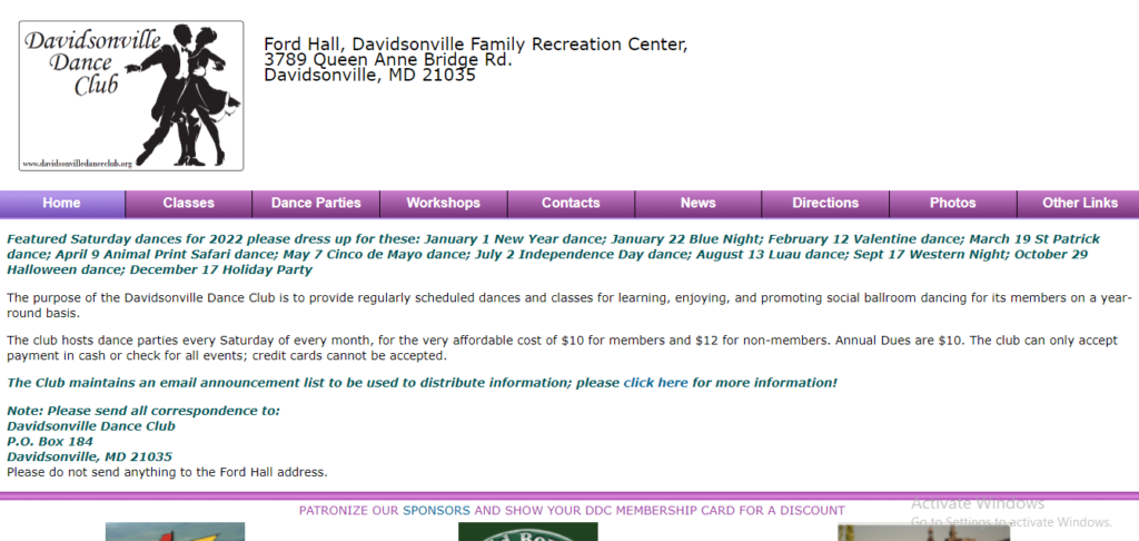 The purpose of the Davidsonville Dance Club is to provide regularly scheduled dances and classes for learning, enjoying, and promoting social ballroom dancing for its members on a year-round basis.