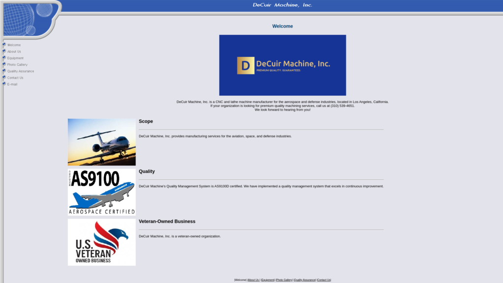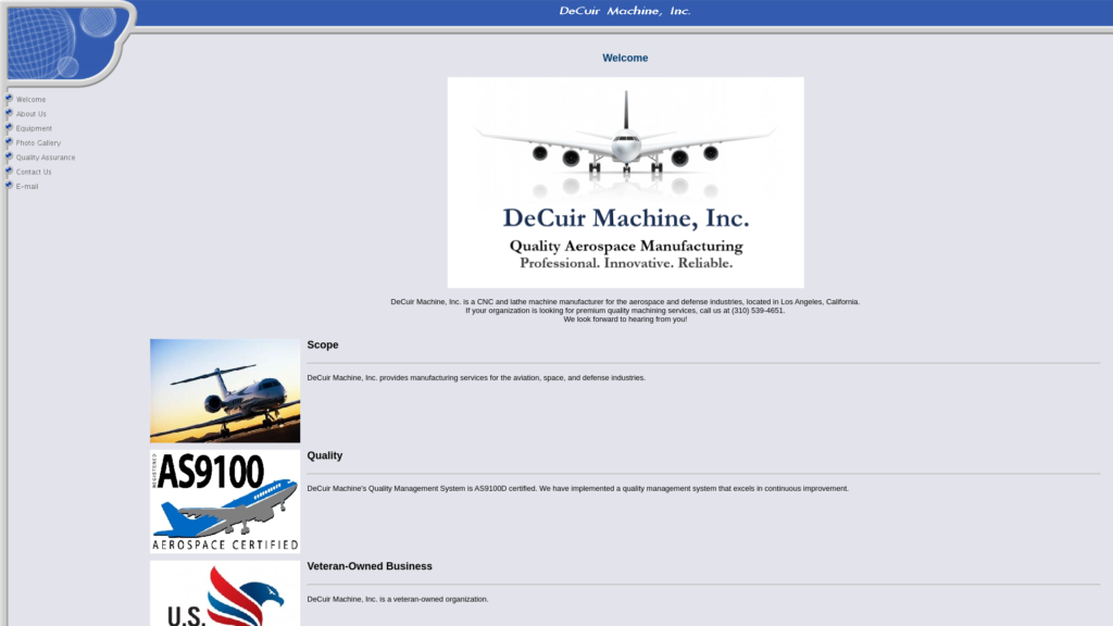 DeCuir Machine, Inc. is a CNC and lathes machine manufacturer for the aerospace and defense industries, located in Los Angeles, California. If your organization is looking for premium quality machining services, call us at (310) 539-4651. We look forward to hearing from you!