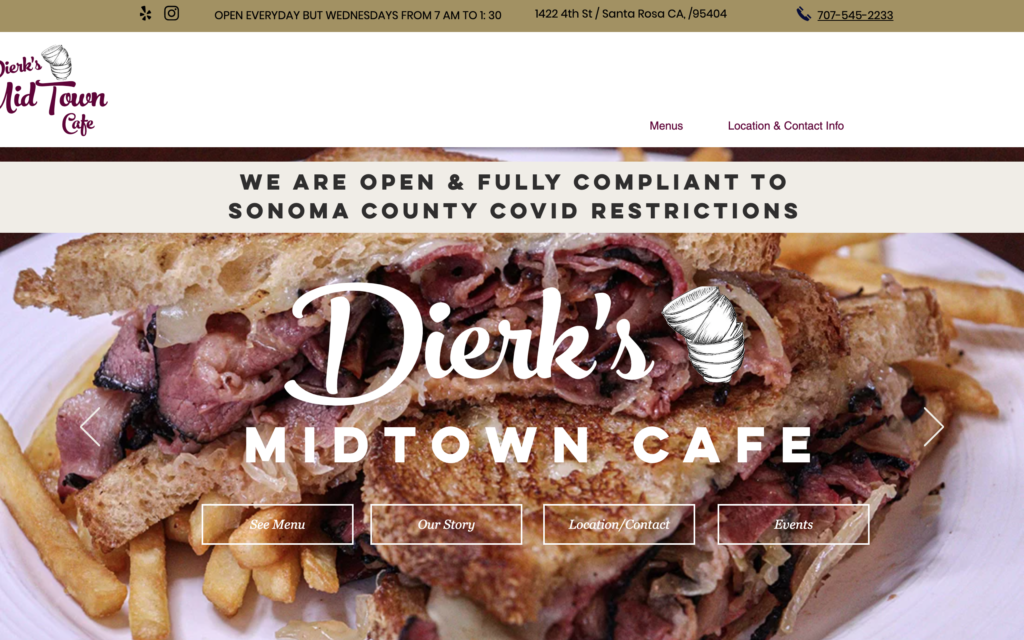 Breakfast, brunch, and lunch. Open every day except Wednesdays from 7 am- 1:30 pm (closed on Thanksgiving and Christmas) call in your food at 707-545-2233!