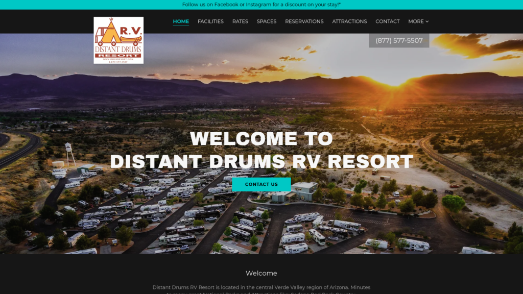 Distant Drums RV Resort is located in the central Verde Valley region of Arizona. Minutes to many great National Parks and Attractions like: Sedona Red Rock Country, Montezuma’s Castle National Monument, Tuzigoot National Monument, Verde Canyon Railroad and many more.
