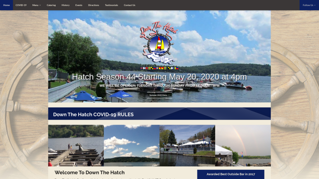 Down the Hatch is famous for its outdoor lakeside dining area, great food and good times. We also have a formal dining room that is open part of the season which is available for parties and corporate functions. Down The Hatch is open on Tuesday through Sunday from 11:30am – 9pm. Our season begins in May and ends in September.