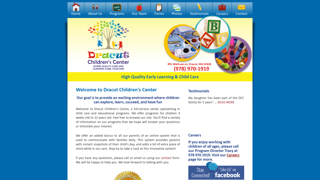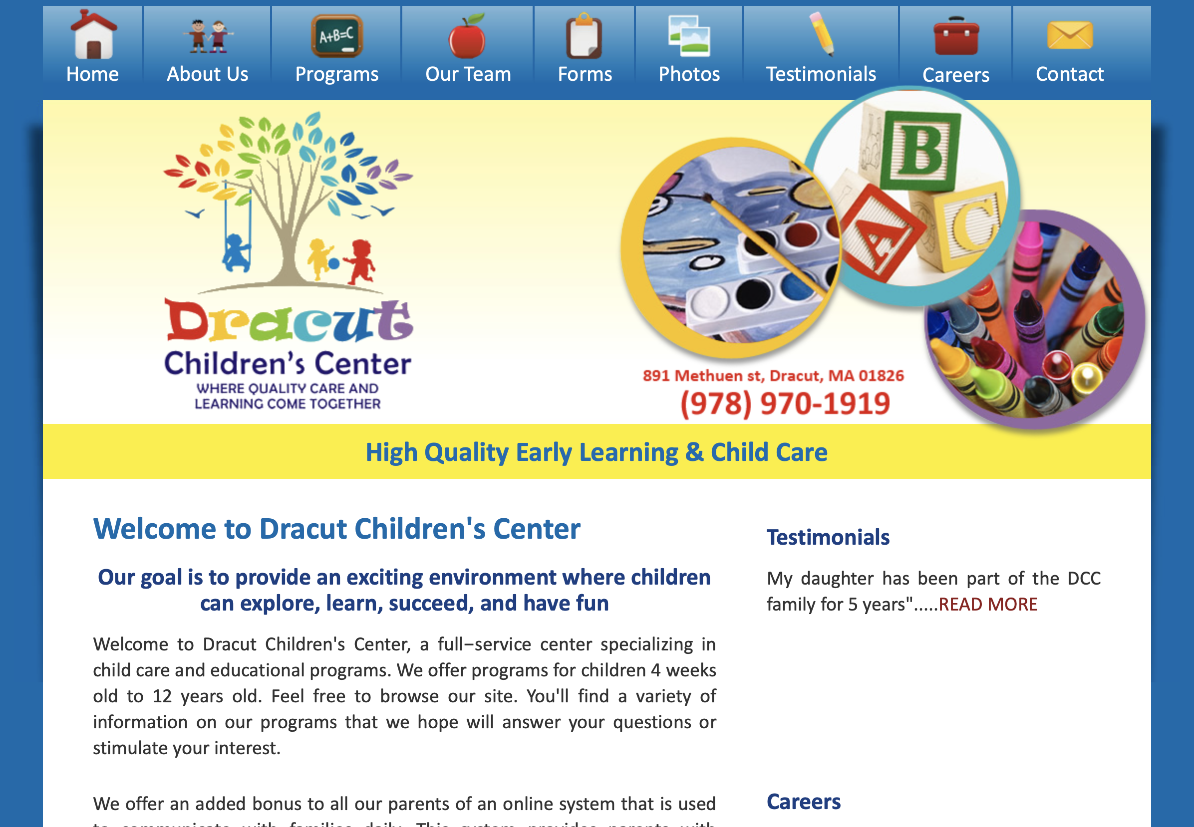 Welcome to Dracut Children’s Center, a full-service center specializing in child care and educational programs. We offer programs for children from 4 weeks old to 12 years old. Feel free to browse our site. You’ll find a variety of information on our programs that we hope will answer your questions or stimulate your interest.