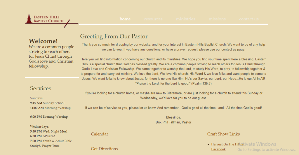 Thank you so much for dropping by our website, and for your interest in Eastern Hills Baptist Church. We want to be of any help we can to you. If you have any questions, or have a prayer request, please use our contact us page.