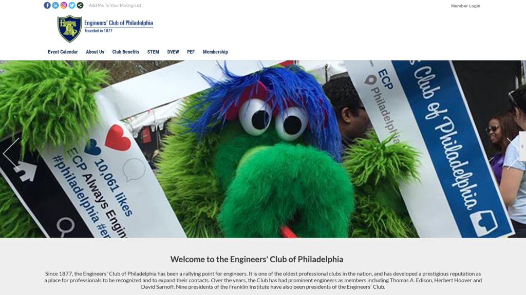 Founded in 1877, the Engineers’ Club of Philadelphia (ECP) is one of the oldest professional clubs in the nation. The ECP is dedicated to relationship building and networking among technical profes