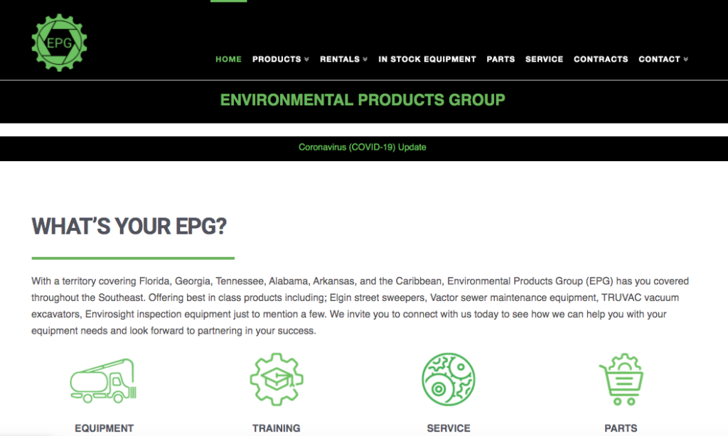 With a territory covering Florida, Georgia, Tennessee, Alabama, Arkansas, and the Caribbean, Environmental Products Group (EPG) has you covered throughout the Southeast. Offering best-in-class products including; Elgin street sweepers, Vactor sewer maintenance equipment, TRUVAC vacuum excavators, Envirosight inspection equipment just to mention a few. We invite you to connect with us today to see how we can help you with your equipment needs and look forward to partnering in your success.