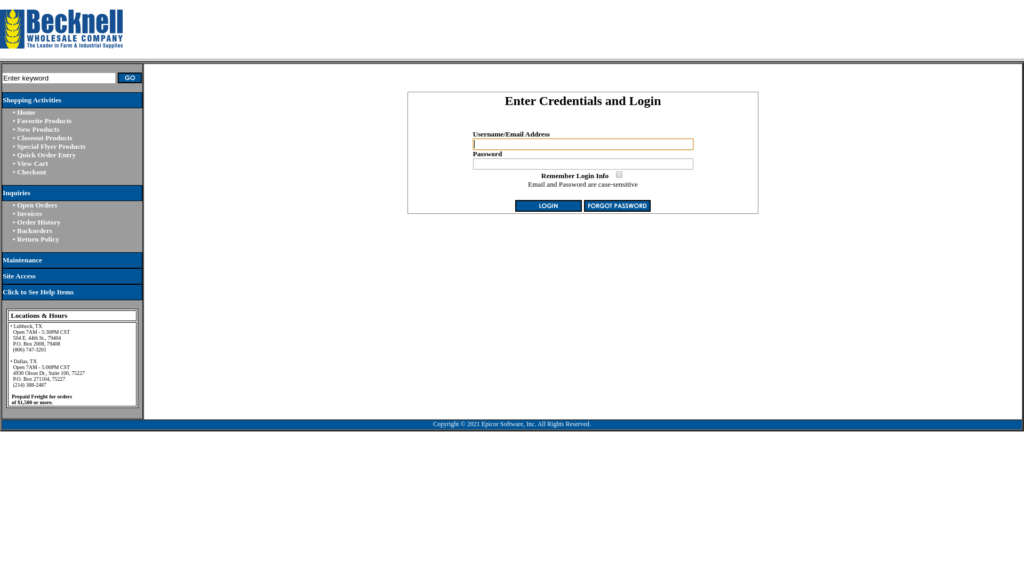 Home » Listings » EPICOR SOFTWARE January 23, 2021 EPICOR SOFTWARE Retail Becknell Wholesale Company The leader in farm and industrial supplies. Add to favourites Report abuse Contact details Please complete the captcha field below to view phone number and/or email address. http://becknell.com WHOIS Created on: 02/27/1998, 05:00AM Last Updated on: 02/23/2026, 09:10AM Expires on: 02/26/2027, 05:00AM Registrant: State: TX Country: UNITED STATES Country Code: US Technical Contact: Country: UNITED STATES Country Code: US Domain Name: becknell.com Name Servers: Host Names: ns1.digitalspaceportal.net, ns2.digitalspaceportal.net Audit: Created on: 03/26/2026, 17:20PM Last Updated on: 03/26/2026, 17:20PM Registrar: Hostopia Canada Corp Registrar IANAID: 52 WHOIS Server: whois.names4ever.com Contact Email: shawngabel@becknell.com