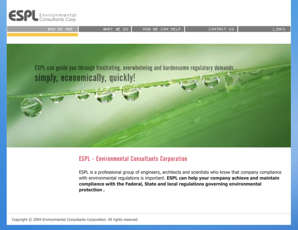 ESPL is a professional group of engineers, architects and scientists who know that company compliance with environmental regulations is important. ESPL can help your company achieve and maintain compliance with the Federal, State and local regulations governing environmental protection.