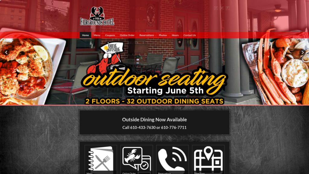 The FairGrounds Hotel is a Seafood House situated in old Victorian Era Converted Hotel on the Allentown FairGrounds.