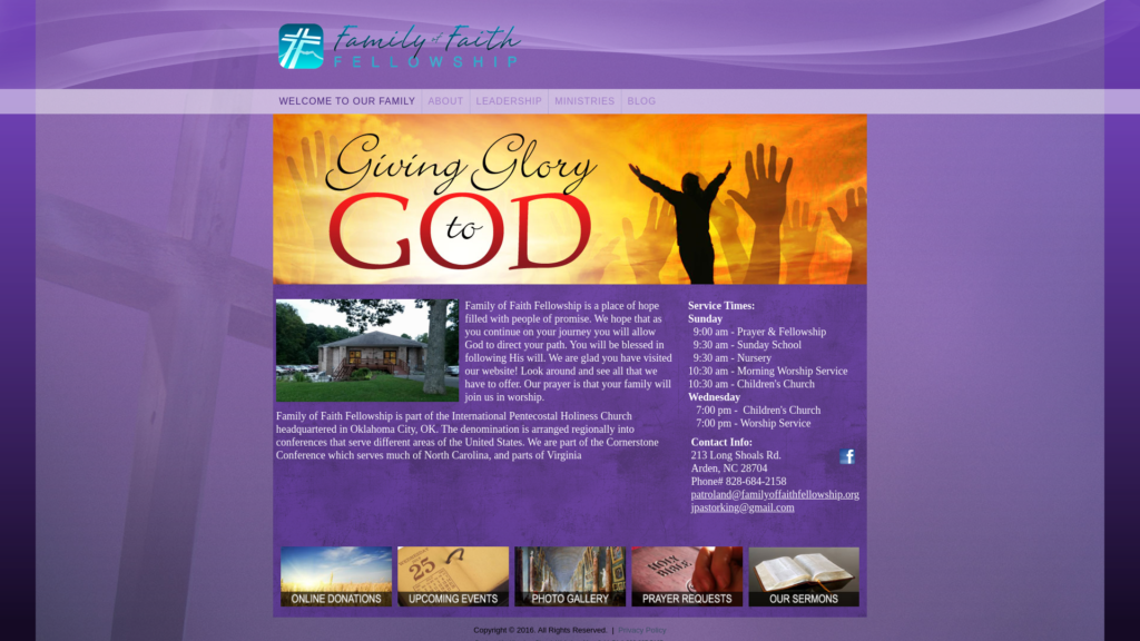 Family, Faith, Fellowship, 213 Long Shoals Rd., Arden, NC 28704