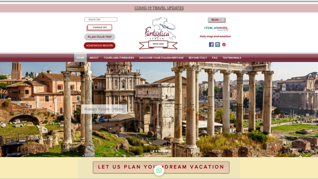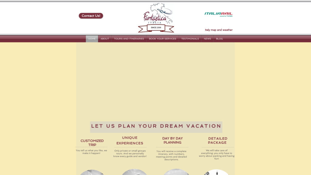 Fantastica Italia is a travel company specializing in the creation of customized vacations to Italy, Spain, France, Portugal and Malta, including personal travel concierge services while you are traveling.