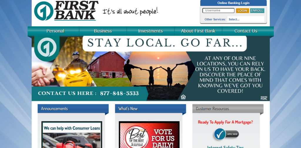 As one of the strongest lending institutions in the area, First Bank takes great pride in working with customers to help them reach their goals of home ownership and dreams such as camps, cottages, or boats, vehicles, and RVs to enjoy the many waterways, land and beauty that Upper Michigan has to offer. Our commercial lenders also work diligently with both prospective and established business owners to provide financing for their ventures, both small and large scale.
