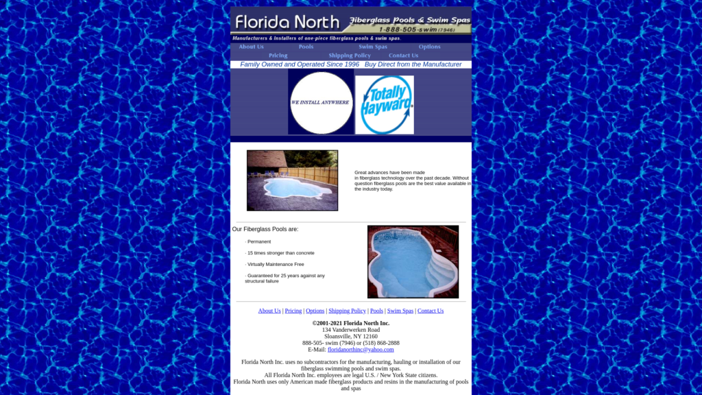 The owner of Florida North has been in the Pool Industry since 1977 when he learned all phases of pool and spa construction in Tampa Bay, Florida. From residential to commercial, from monolithic pour to shotcrete, gunite, and liner pools. In the early 1990’s he was introduced to fiberglass pools. In 1995 he moved to upstate New York and started selling and installing fiberglass pools in the Northeast. In 1996, Florida North started manufacturing its own pools. We currently sell and install fiberglass pools and swim spas from the US Virgin Islands to the West Coast of California, from Southern Canada to the Southern Tip of Florida