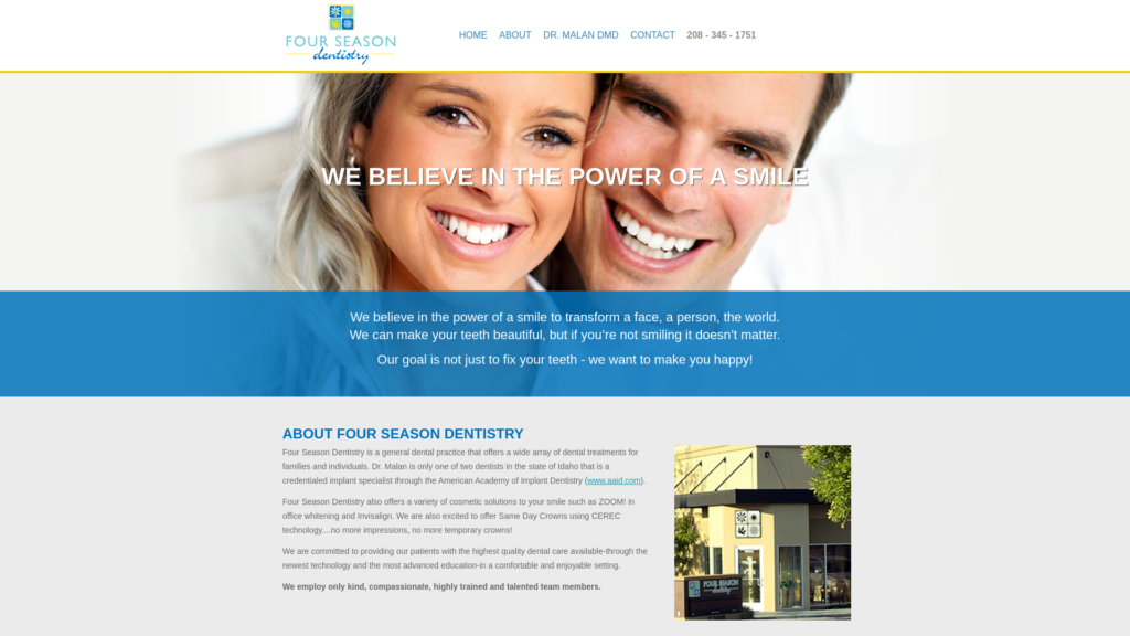 Four Season Dentistry is a general dental practice that offers a wide array of dental treatments for families and individuals. Dr. Malan is only one of two dentists in the state of Idaho that is a credentialed implant specialist through the American Academy of Implant Dentistry (www.aaid.com).
