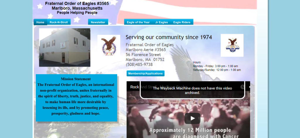 Home » Listings » Fraternal Order Of Eagles March 23, 2024 Fraternal Order Of Eagles Non-Profit Serving our community since 1974 Add to favourites Report abuse Contact details Please complete the captcha field below to view phone number and/or email address. http://marlboroeagles3565.com WHOIS Domain Name: marlboroeagles3565.com Audit: Created on: 03/27/2026, 02:40AM Last Updated on: 03/27/2026, 02:40AM