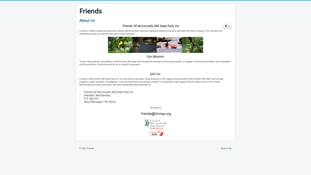 Non-profit organization established to protect McConnells Mill State Park in Pennsylvania