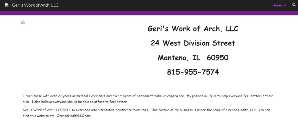 Geri’s Work of Arch, LLC has also extended into alternative healthcare modalities. This portion of my business is under the name of Orenda Health, LLC. You can find this website at: OrendaHealthLLC.com