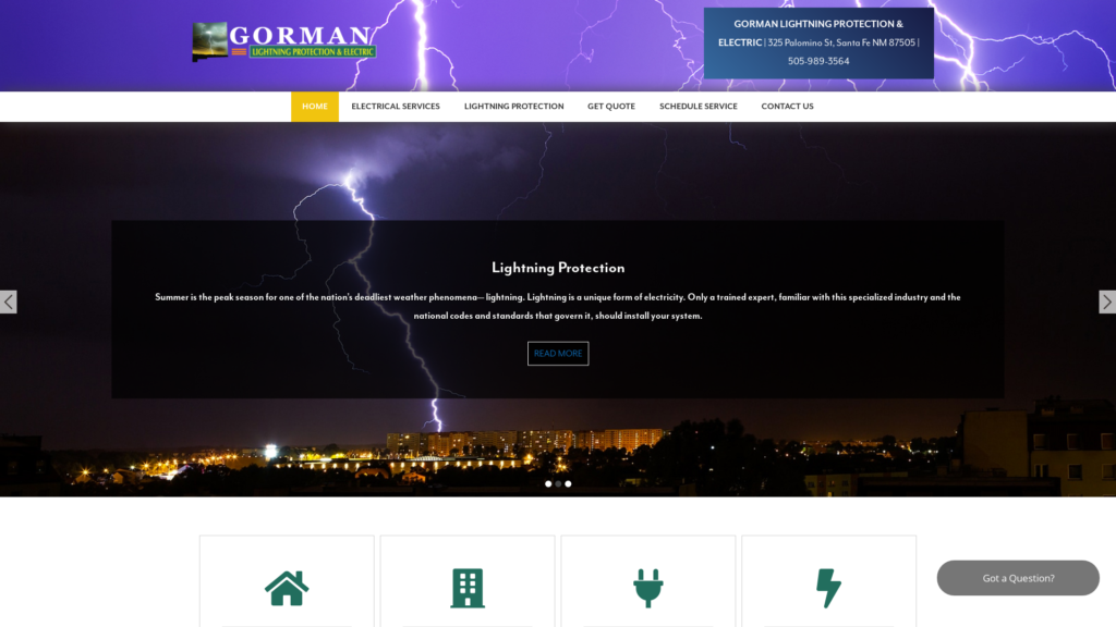 Gorman Lightning Protection & Electric, a contractor offering lightning protection services, residential electrical services, commercial electric services in Santa Fe, Albuquerque and New Mexico