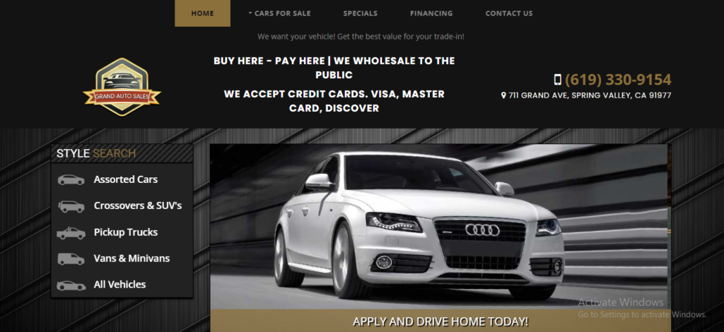 Home » Listings » Grand Auto Sales October 28, 2022 Grand Auto Sales Automotive BUY HERE – PAY HERE | WE WHOLESALE TO THE PUBLIC WE ACCEPT CREDIT CARDS. VISA, MASTER CARD, DISCOVER Add to favourites Report abuse Contact details Please complete the captcha field below to view phone number and/or email address. http://grandautosandiego.com WHOIS Created on: 12/08/2015, 18:00PM Last Updated on: 12/09/2025, 13:02PM Expires on: 12/08/2026, 18:00PM Registrant: Organization: Domains By Proxy, LLC State: Arizona Country: UNITED STATES Country Code: US Technical Contact: Organization: Domains By Proxy, LLC State: Arizona Country: UNITED STATES Country Code: US Domain Name: grandautosandiego.com Name Servers: Host Names: NS43.DOMAINCONTROL.COM, NS44.DOMAINCONTROL.COM Audit: Created on: 04/15/2026, 13:40PM Last Updated on: 04/15/2026, 13:40PM Registrar: GoDaddy.com, LLC Registrar IANAID: 146 WHOIS Server: whois.godaddy.com Contact Email: abuse@godaddy.com