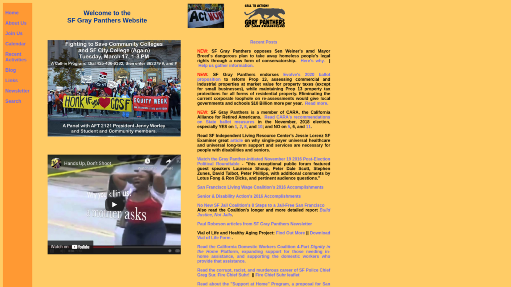 We stand for age and youth working together to make the world a place where the young can look forward to growing old. We believe all people are entitled to certain fundamental rights: Meaningful employment. A country free from racism. Economic security. Decent and affordable housing and healthcare. A world in peace. A life of dignity from birth to death, free from fear and abuse.