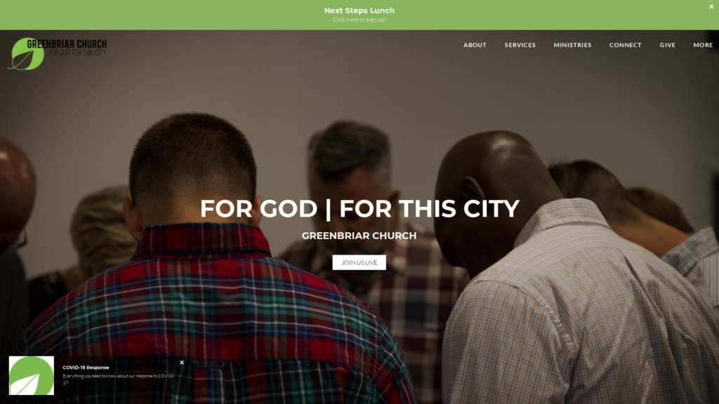 Greenbriar Church exists because God called us to plant an on-mission, disciple-making church for the glory of God and the benefit of our city. Jesus told us in the Great Commandment to love Him with all that we are and to love our neighbor like ourselves. The Great Commandment motivates us to be missionaries in our city and it forms the essence of our mission.