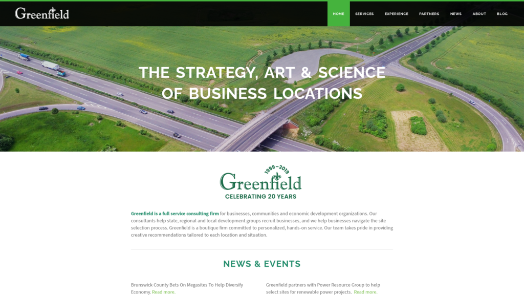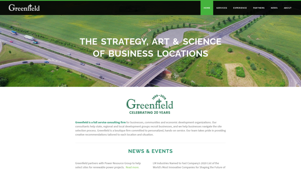 ​Greenfield is a full-service consulting firm for businesses, communities, and economic development organizations. Our consultants help state, regional, and local development groups recruit businesses, and we help businesses navigate the site selection process. Greenfield is a boutique firm committed to personalized, hands-on service. Our team takes pride in providing creative recommendations tailored to each location and situation.