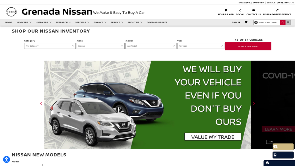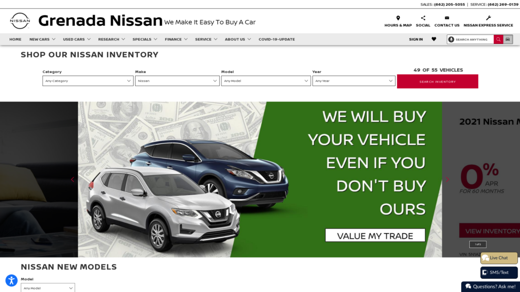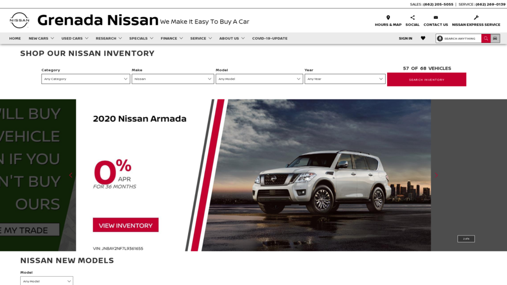 Grenada Nissan, Grenada, MS car dealer, Nissan, 370Z Coupe, Altima, Armada, Frontier, Kicks, LEAF, Maxima, Murano, NV Passenger, NV200 Compact Cargo, Pathfinder, Rogue, Rogue Sport, Sentra, Titan, Titan XD, Versa, Certified used cars, Grenada new car dealer, Grenada used car dealer, Trade in value