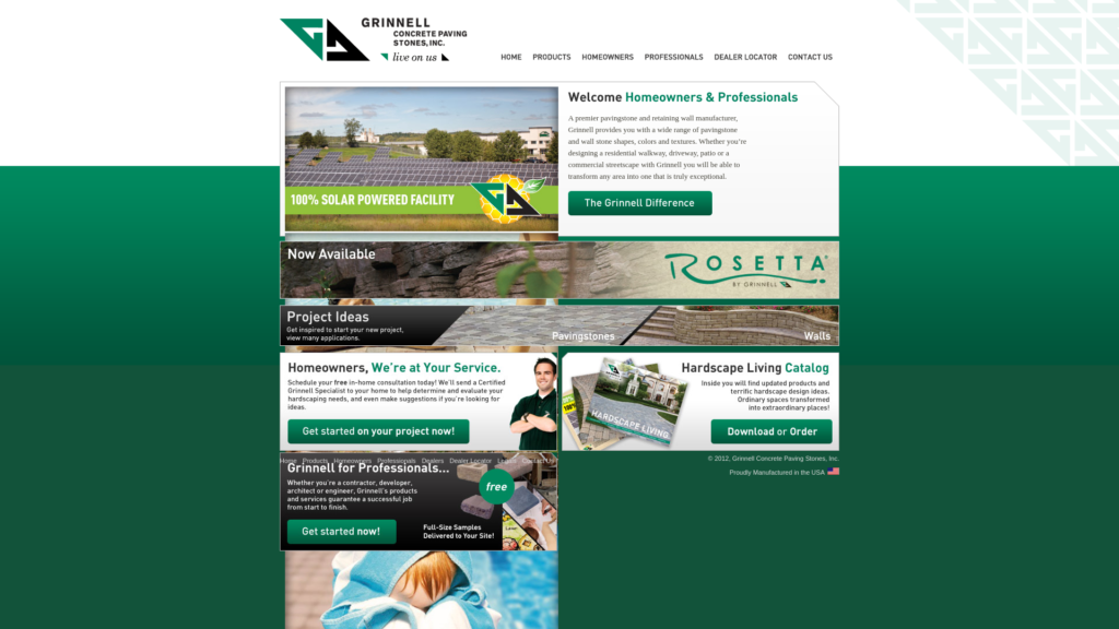 Proudly Manufactured in the U.S.A Grinnell provides distinctive look of Interlocking Concrete Paving Stones, Retaining Wall Systems, Patio Stones, Curbs and Edgings that complement any residential, commercial or public landscape. With so many design options, our hardscape products offer virtually unlimited possibilities for just about any landscape design or application. We hope that the images and ideas you find on our website will inspire you with essential elements of style to make your property unique and inviting for years to come.