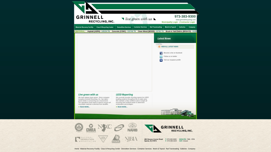 We have always been green. Since company inception, Grinnell Recycling, Inc. has taken great strides in preserving our environment. We operate a DEP approved Material Recovery Facility (MRF) and Class B Recycling Center in Sparta, NJ. These operations work hand in hand to ensure all recyclable material is diverted from landfills. We accept organic and construction material which is processed into marketable commodities such as mulch, topsoil, and Recycled Concrete Aggregate (RCA).
