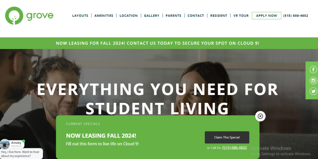 Grove at Ames is your home for success during your college years, right in the heart of Ames. Our fully furnished apartments near Iowa State University put you in the center of it all. Offering pet-friendly apartments with modern amenities, trendy furnishings and an unmatched location, there’s tons of space and amenities for both study and relaxation. A top value with a strong sense of community, Grove supports your success from day one.