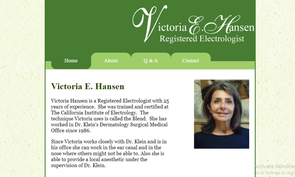 Victoria Hansen is a Registered Electrologist with 25 years of experience. She was trained and certified at The California Institute of Electrology. The technique Victoria uses is called the Blend. She has worked in Dr. Klein’s Dermatology Surgical Medical Office since 1986.