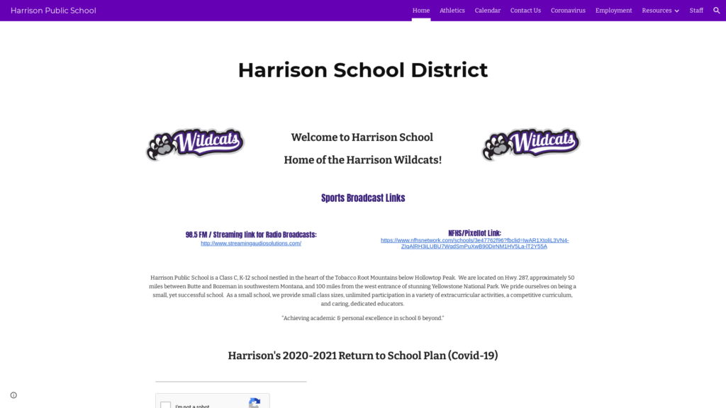 Harrison Public School is a Class C, K-12 school nestled in the heart of the Tobacco Root Mountains below Hollowtop Peak. We are located on Hwy. 287, approximately 50 miles between Butte and Bozeman in southwestern Montana, and 100 miles from the west entrance of stunning Yellowstone National Park. We pride ourselves on being a small, yet successful school. As a small school, we provide small class sizes, unlimited participation in a variety of extracurricular activities, a competitive curriculum, and caring, dedicated educators.
