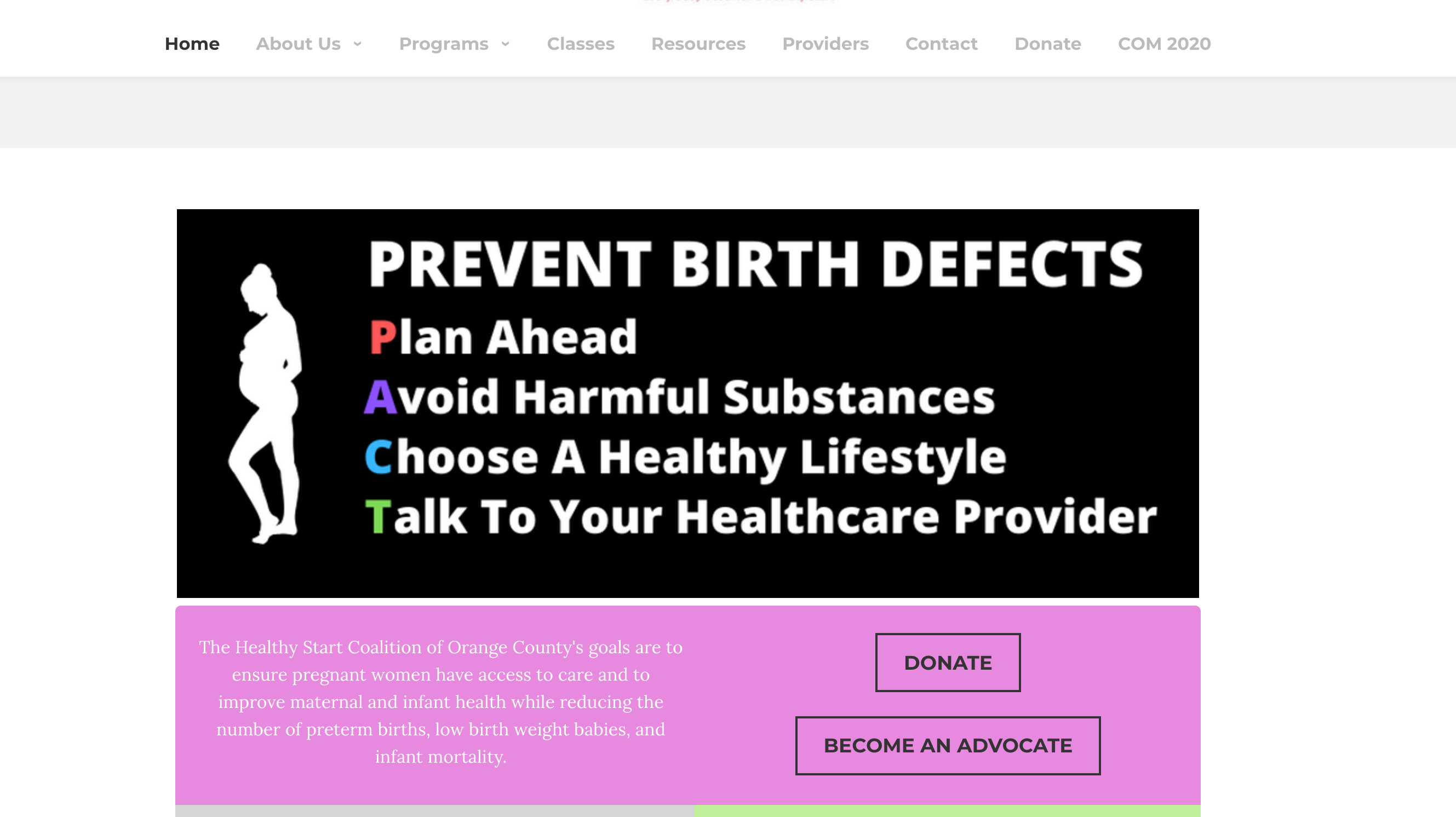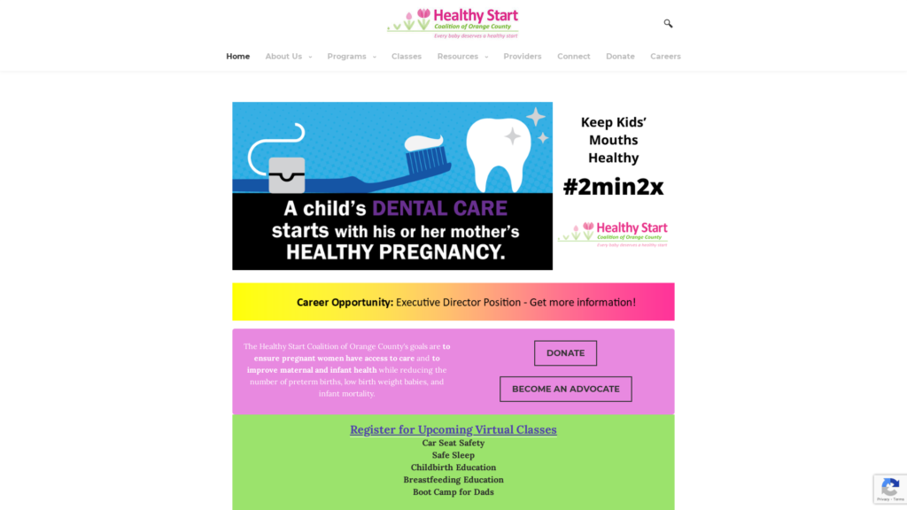 Healthy Start Coalition of Orange County's goals are to ensure pregnant women have access to care and to improve maternal and infant health while reducing the number of preterm births, low birth weight babies, and infant mortality.
