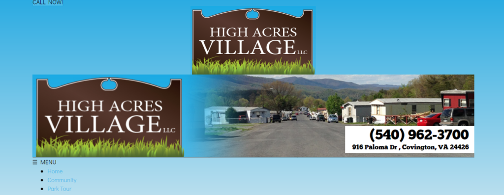 High Acres Village is a modern planned mobile home and travel trailer park, located in the city limits of Covington, Virignia and surrounded by woodlands, the park is situated on a level plateau overlooking the city. Our planned home sites are large and have every up to date convenience. Recreation is a prime concern in our park and you will find many hours of pleasure in our swimming pool and playgrounds. Travel trailer spaces are rented out by the month.