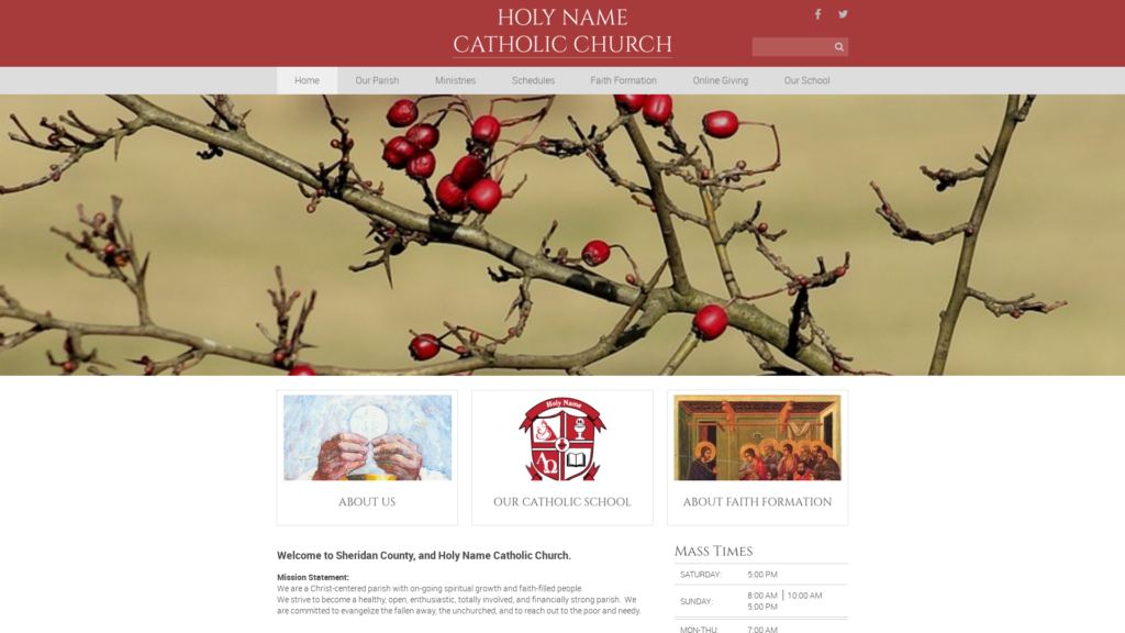 In August 1892 Father C. Scollen arrived in Sheridan and stayed until December of 1894. During this time, Holy Name built its first church in the eastern part of town. In 1894 the first Mass was held in the new church.
