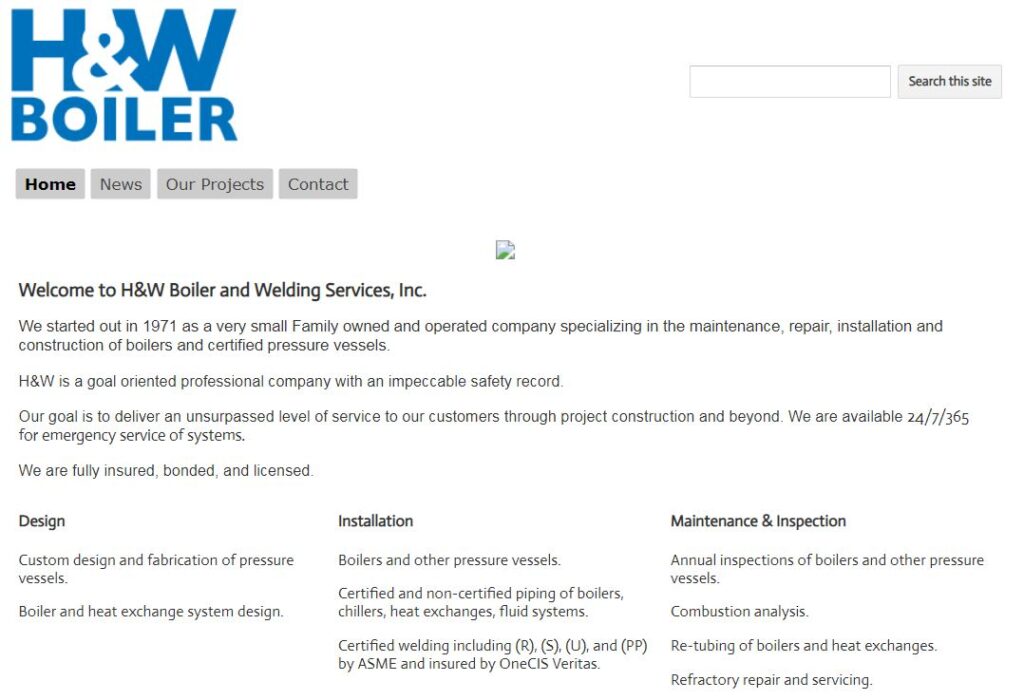 We started out in 1971 as a very small family-owned and operated company specializing in the maintenance, repair, installation, and construction of boilers and certified pressure vessels. H&W is a goal-oriented professional company with an impeccable safety record.