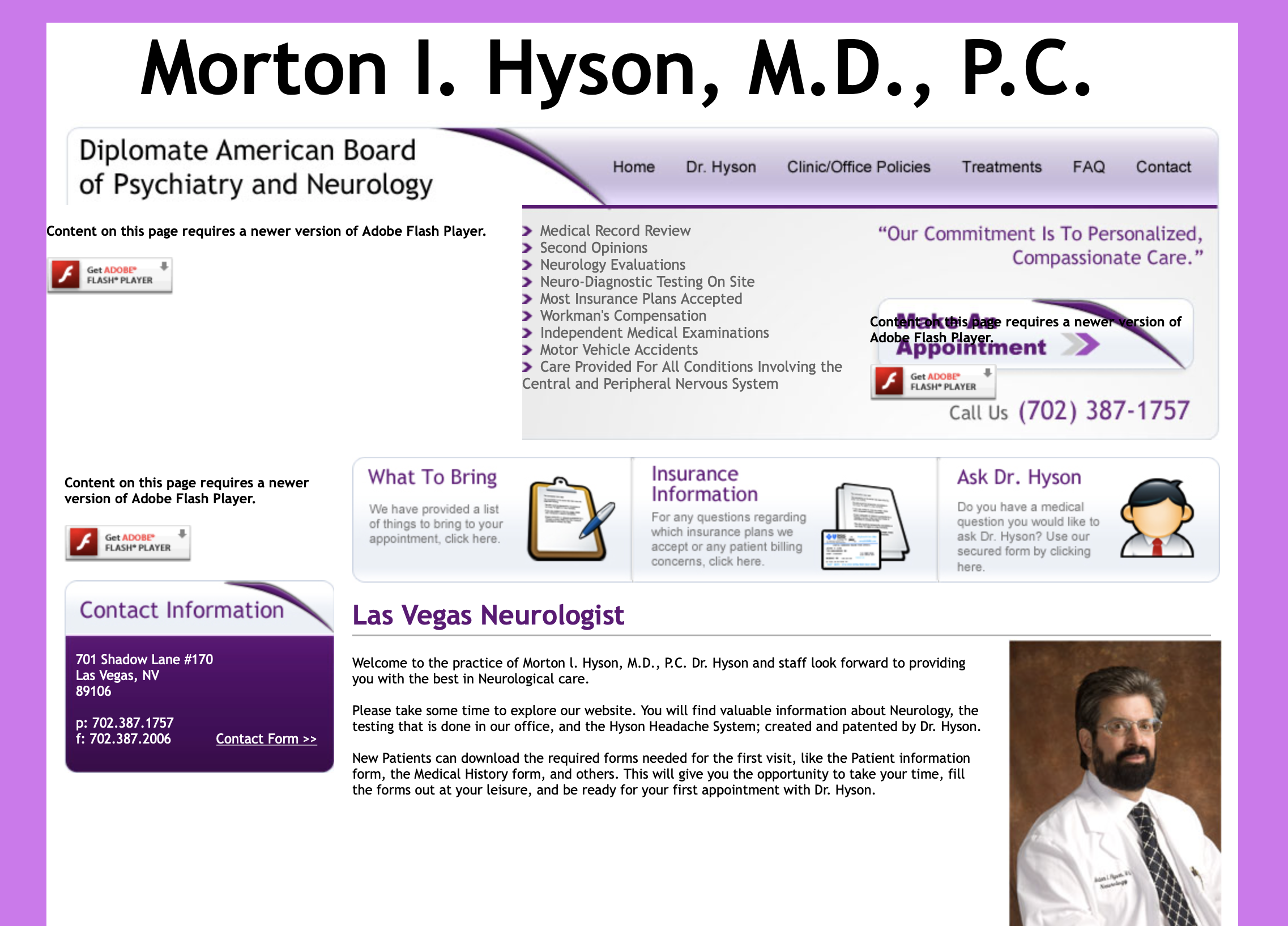 Please take some time to explore our website. You will find valuable information about Neurology, the testing that is done in our office, and the Hyson Headache System; created and patented by Dr. Hyson.