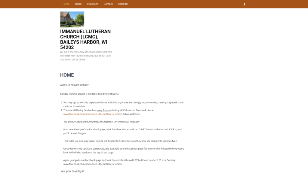 Whether you are looking for a church home or a place to worship while visiting Door County, we hope to be your place of worship and fellowship!
