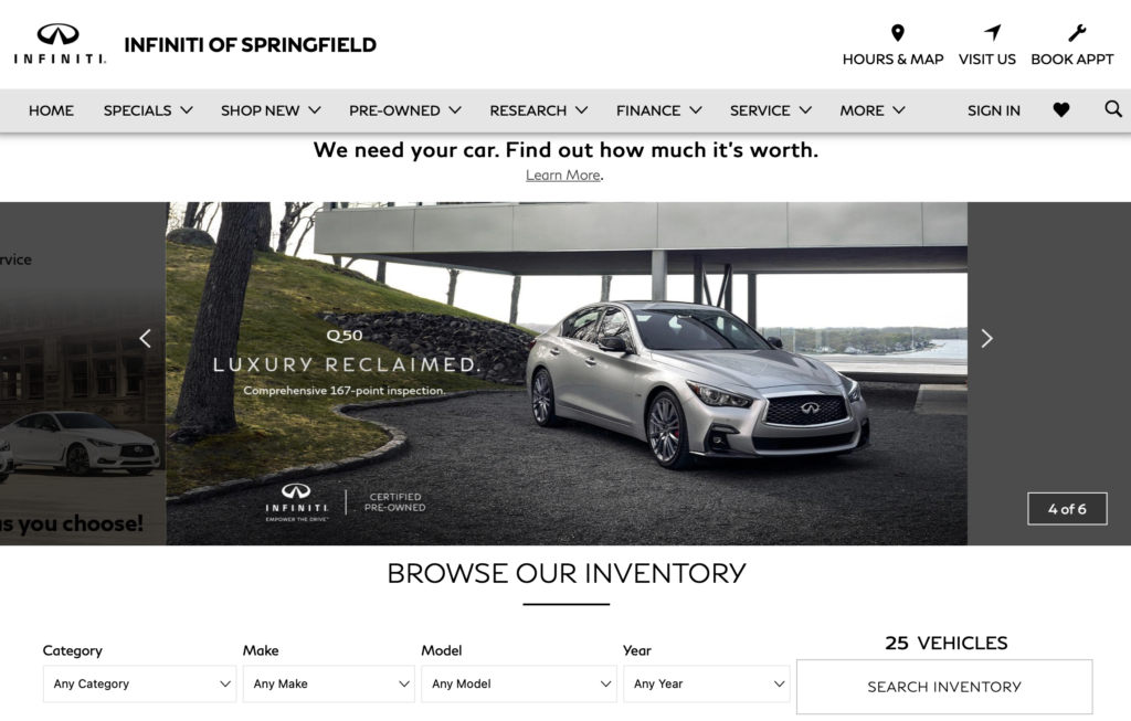 The expert team at INFINITI of Springfield is committed to caring for your vehicle for as long as you own it. We have state-of-the-art service facilities and use the latest diagnostics to maintain and repair your INFINITI vehicle. We offer many convenient amenities such as Express Service to make your visit with us pleasurable. At INFINITI of Springfield, we use only genuine INFINITI parts, so you can be sure your vehicle will perform as well as the day you got it.