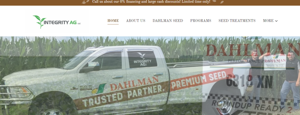 At Integrity Ag we strive to provide the highest quality products from the leading suppliers in the Agriculture industry. We dedicate ourselves to giving our customers the greatest chance of maximizing their profits. Our vision is to be seen by our customers as the most honest and dependable providers of quality seed and consulting services.