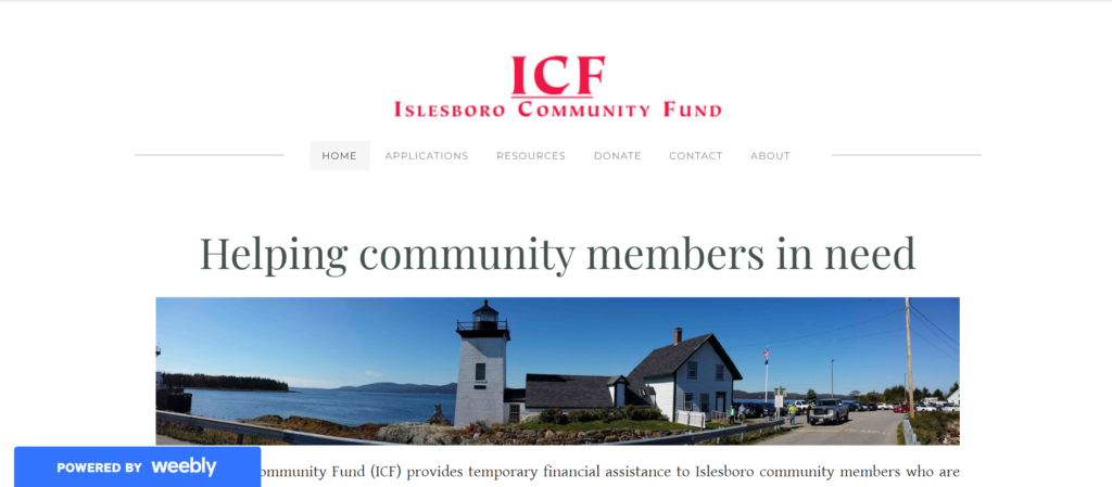 The Islesboro Community Fund (ICF) was founded in 1950 and is a 501 (c) non-profit organization that provides temporary financial assistance to Islesboro community members who are facing unforeseen and catastrophic emergencies. The Fund also provides financial assistance to Islesboro community members who seek higher or continuing education, professional training and educational enrichment.