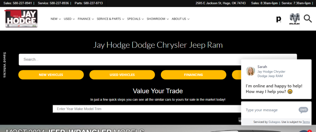Jay Hodge Dodge Chrysler Jeep Ram in Hugo, OK happily meets the needs of each individual who steps foot inside our dealership. We know that our customers have high expectations, and we enjoy the challenge of meeting and exceeding those standards each and every time. Allow us to demonstrate our commitment to excellence by assisting you with an auto purchase or maintenance procedure, today!