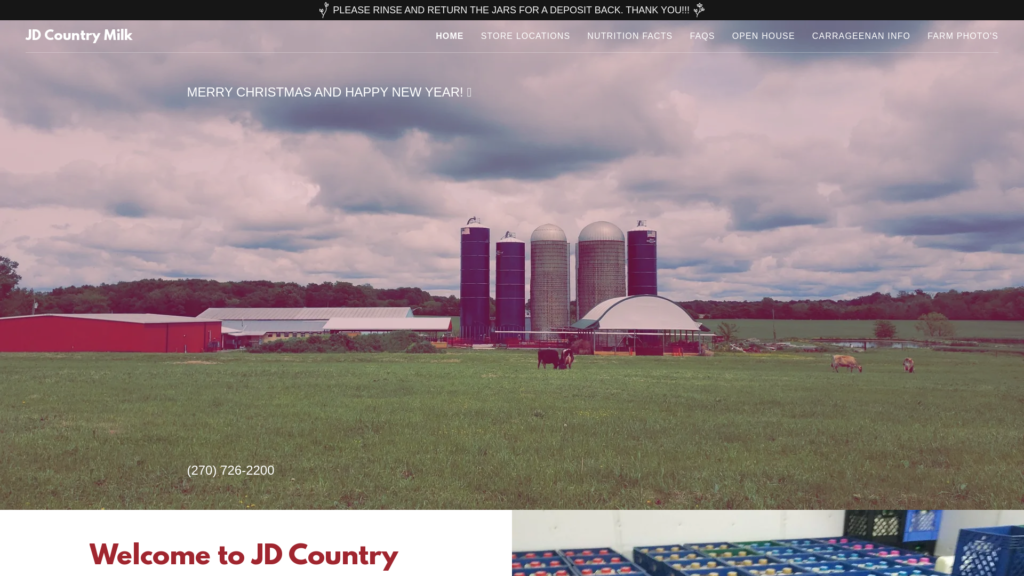 JD Country Milk is a family-owned and operated dairy farm/processing plant located in Logan County KY. We are dedicated to providing you with quality hormone-free milk. Our cows are pasture grazed and not given any antibiotics or hormones. Instead, they are fed a vitamin-enriched diet and all the grass they can eat.
