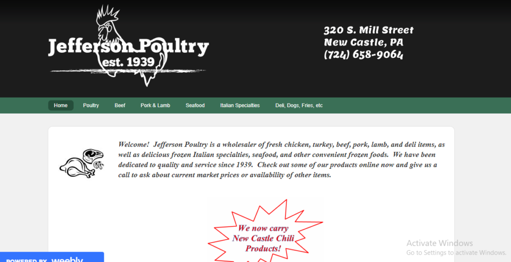 Jefferson Poultry is a wholesaler of fresh chicken, turkey, beef, pork, lamb, and deli items, as well as delicious frozen Italian specialties, seafood, and other convenient frozen foods. We have been dedicated to quality and service since 1939. Check out some of our products online now and give us a call to ask about current market prices or availability of other items.