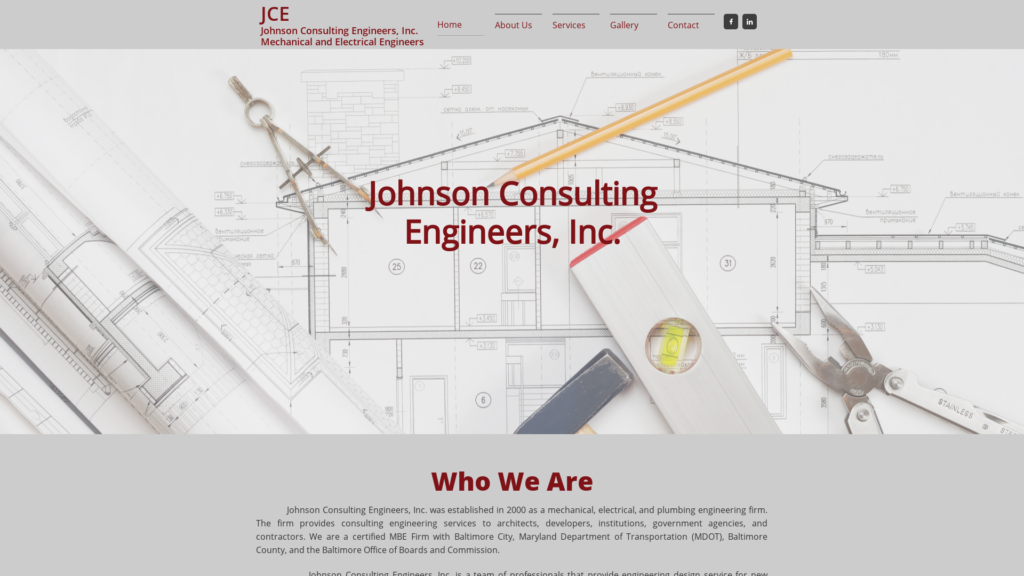 Johnson Consulting Engineers, Inc. was established in 2000 as a mechanical, electrical, and plumbing engineering firm. The firm provides consulting engineering services to architects, developers, institutions, government agencies, and contractors. We are a certified MBE Firm with Baltimore City, Maryland Department of Transportation (MDOT), Baltimore County, and the Baltimore Office of Boards and Commission.