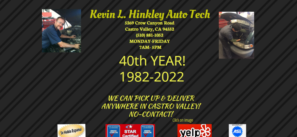When you do business with Kevin L. Hinkley Auto Tech, you can be sure you are in good hands. We offer the most reputable and professional automotive services in the Castro Valley area. Professionally owned and operated for over 30 years, we strive to make your visit personable and worry-free. Count on the experts at Kevin L. Hinkley Auto Tech to provide the highest standards of service in the industry and help you avoid those automotive pitfalls down the road. We specialize in providing prompt and professional service for all your automotive needs. Each member of our team is here to serve you and provide you peace of mind.