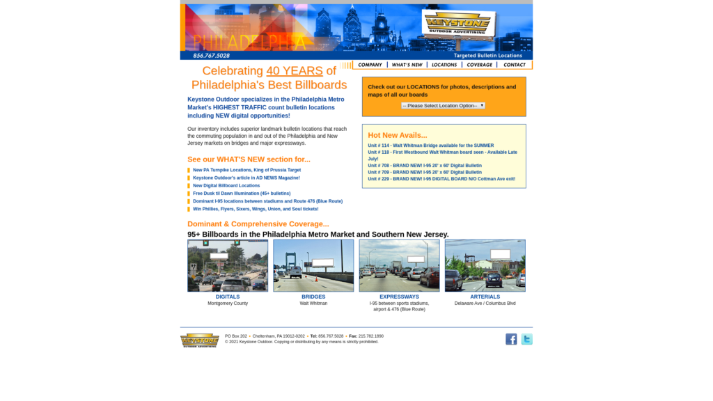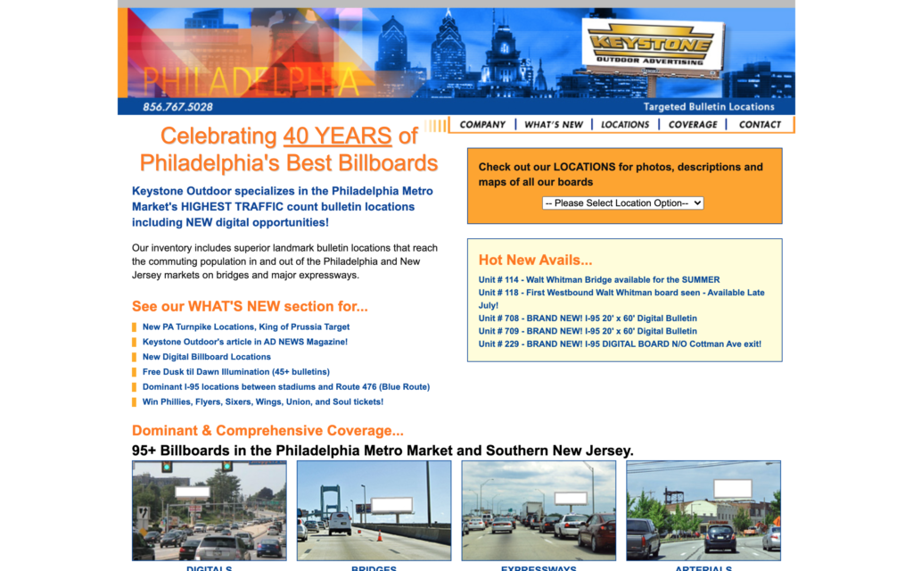 Keystone Outdoor specializes in the Philadelphia Metro Market's highest traffic count bulletin locations with competitive pricing and efficient package programs