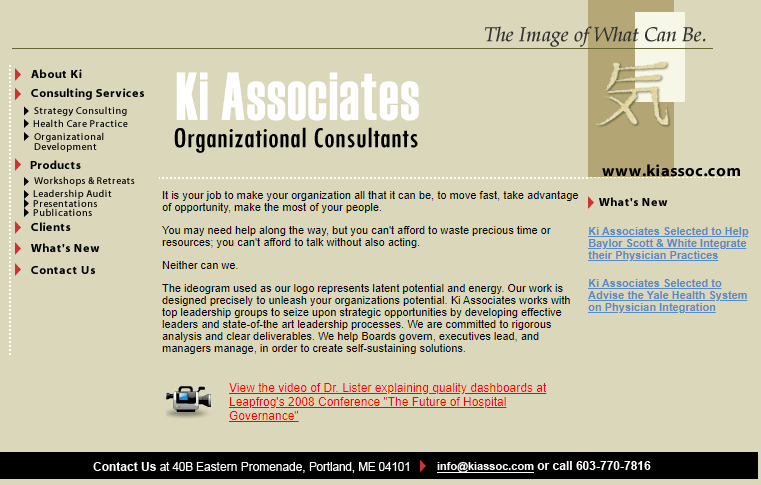 Ki Associates is an organizational consulting firm based in the city of Portland, Maine. Ki Associates is made up of three principal partners and a number of associate consultants, each with particular interests and expertise. A boutique firm, we are global in our vision, reach and expertise. As a result, we can work effectively with small, medium, or large companies, anywhere in the world, as the need dictates.